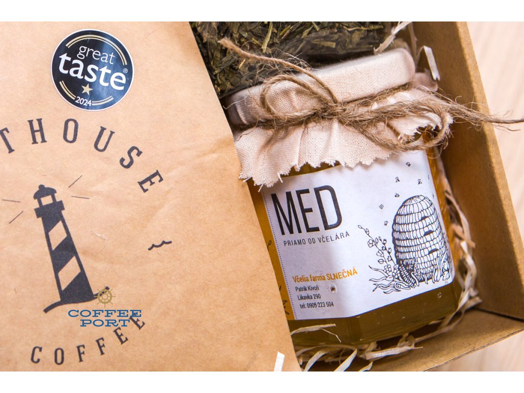 Lighthouse Coffee Colombia Rio Magdalena & Zelený čaj Sencha a med od včelára: darčekový balíček