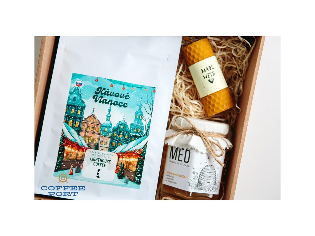 Lighthouse Coffee Vianočná káva & med a sviečka od včelára: darčekový balíček